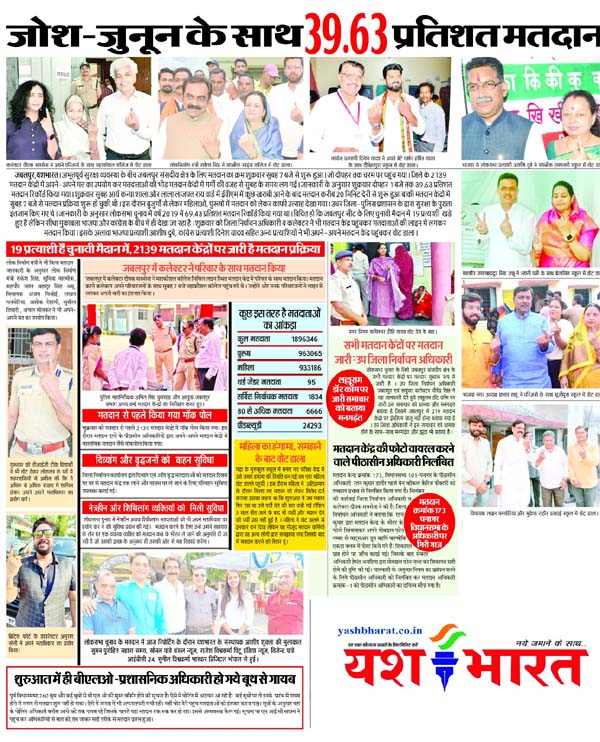जबलपुर,यशभारत। अभूतपूर्व सुरक्षा व्यवस्था के बीच जबलपुर संसदीय क्षेत्र के लिए मतदान का क्रम शुक्रवार सुबह 7 बजे से शुरू हुआ। जो दोपहर तक चरम पर पहुंच गया। जिले के 2139 मतदान केंद्रों में अपने-अपने मत का उपयोग कर मतदाताओं की भीड़ मतदान केंद्रों में गर्मी की वजह से सुबह के समय लग गई। जानकारी के अनुसार शुक्रवार दोपहर 1 बजे तक 39.63 प्रतिशत मतदान रिकॉर्ड किया गया। शुक्रवार सुबह आर्य कन्या शाला और लाला लाजपत राय वार्ड में ईवीएम में कुछ खराबी आने के बाद मतदान करीब 20 मिनिट देरी से शुरू हुआ बाकी मतदान केंद्रों में सुबह 7 बजे से मतदान प्रक्रिया शुरू हो चुकी थी। इस दौरान बुजुर्गों से लेकर महिलाओं, पुरूषों में मतदान को लेकर काफी उत्साह देखा गया। उधर जिला-पुलिस प्रशासन के द्वारा सुरक्षा के पुख्ता इंतजाम किए गए थे। जानकारी के अनुसार लोकसभा चुनाव में वर्ष 2019 में 69.43 प्रतिशत मतदान रिकॉर्ड किया गया था। विदित हो कि जबलपुर सीट के लिए चुनावी मैदान में 19 प्रत्याशी खड़े हुए हैं लेकिन सीधा मुकाबला भाजपा और कांग्रेस के बीच में ही देखा जा रहा है। शुक्रवार को जिला निर्वाचन अधिकारी व कलेक्टर ने भी मतदान केंद्र पहुंचकर मतदाताओं की लाइन में लगकर मतदान किया। इसके अलावा भाजपा प्रत्याशी आशीष दुबे, कांग्रेस प्रत्याशी दिनेश यादव सहित अन्य प्रत्याशियों ने भी अपने-अपने मतदान केंद्र पहुंचकर वोट डाला।